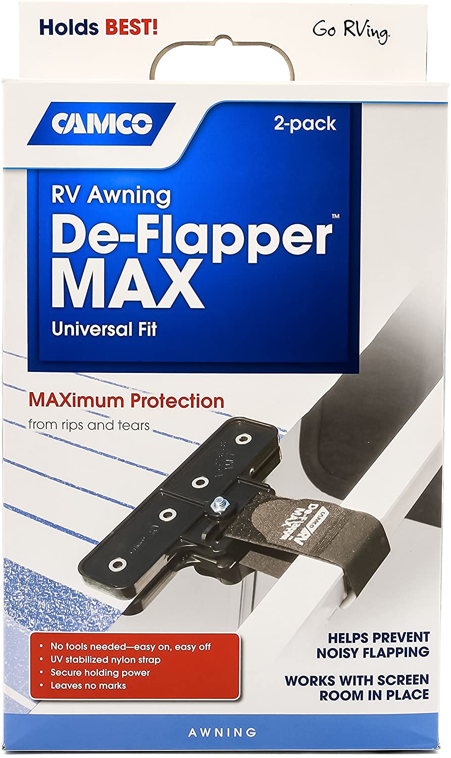 Prevents awning from costly rips and tears while preventing noisy wind flapping.