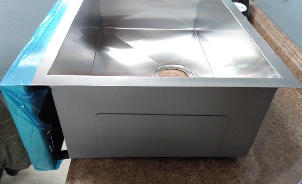THICKNESS: This sink has a 20 gauge bowl and an 18 gauge Apron front.