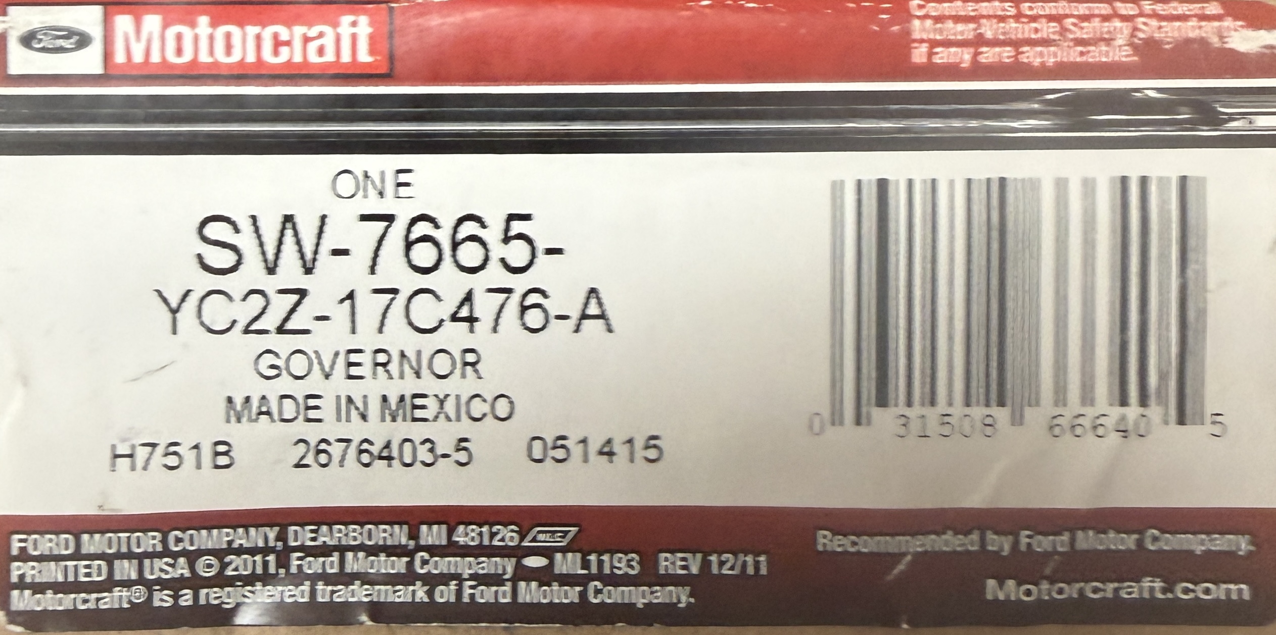 YC2Z-17C476-A Governor